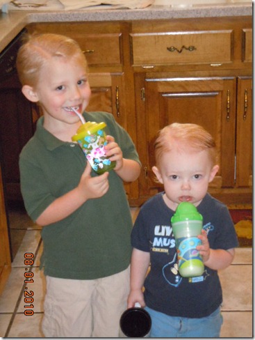 A lot of changes are coming up…Dalton starts kindergarten on Monday! Oh my!! We had our open house yesterday and he got to meet his teacher, and we dropped off all his school supplies. It didn’t start until 9:00. At 6:50, I was getting in the shower, and he was already dressed, with shoes on and tied in knots (obviously our shoe-tying lesson the night before hasn’t stuck yet!!), and he wanted to leave. I told him we had to wait for Daddy to come get Jackson and take him to therapy before we could go. His response was “Just leave him sleeping in his cage!” (Which is his crib, we don’t REALLY make Jackson sleep in a cage!)